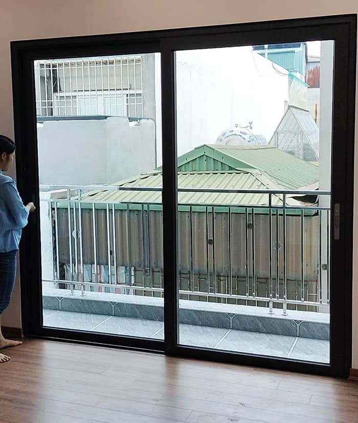 Cửa nhôm kính lùa 2 cánh thích hợp cho cửa ban công, cửa ra sân vườn.